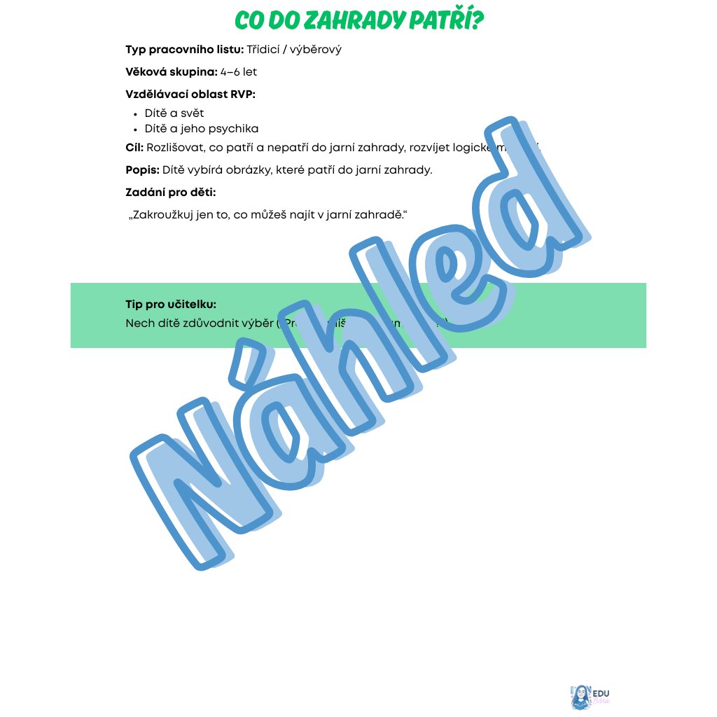 Logika: Třídění předmětů, které do zahrady (ne)patří.