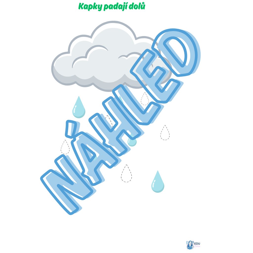 Vizuální podpora: Čisté a milé ilustrace mráčků a kapek, které jsou přizpůsobeny dětskému vnímání