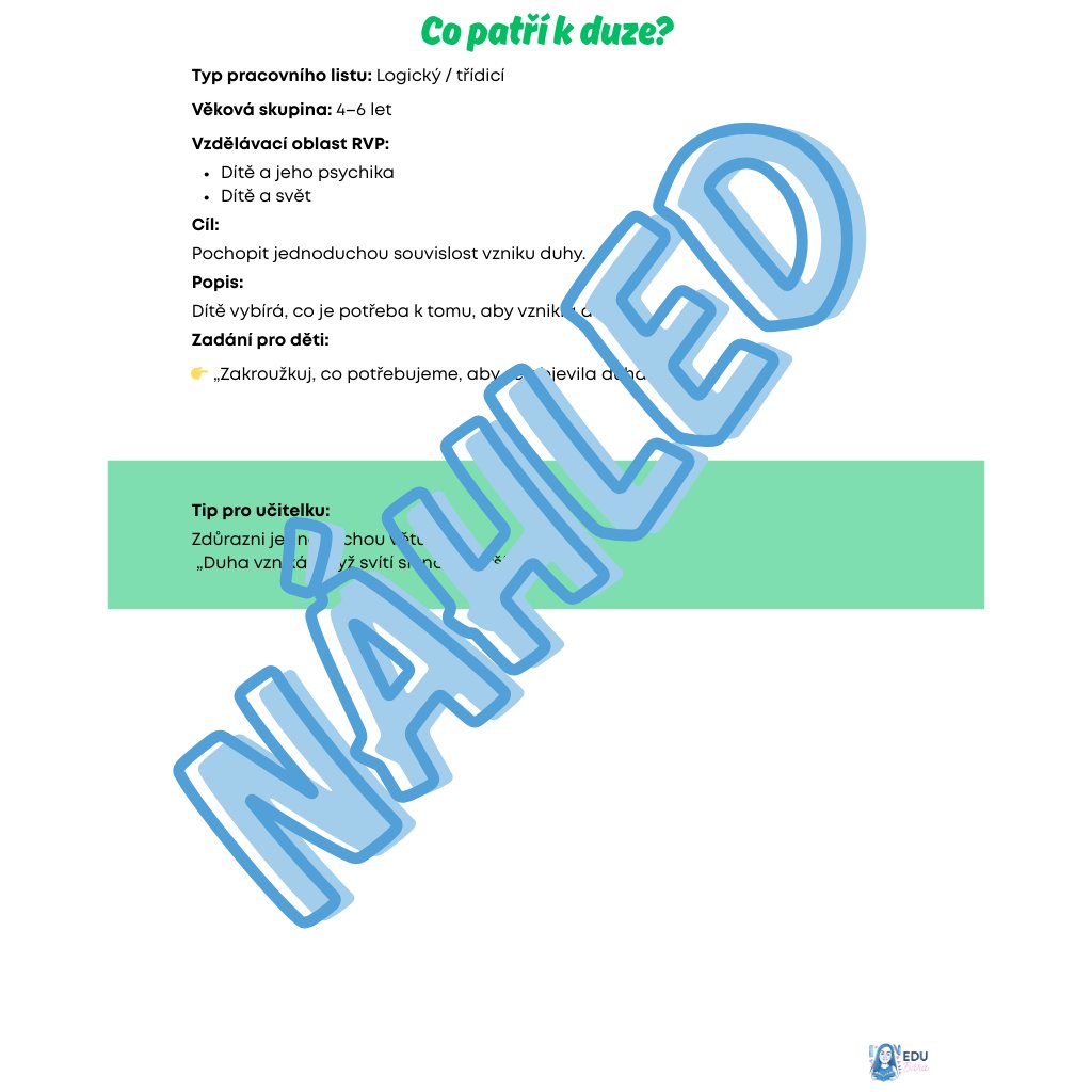 Soubor 5 tematických pracovních listů, které upevňují znalost barev, logiku a sebereflexi