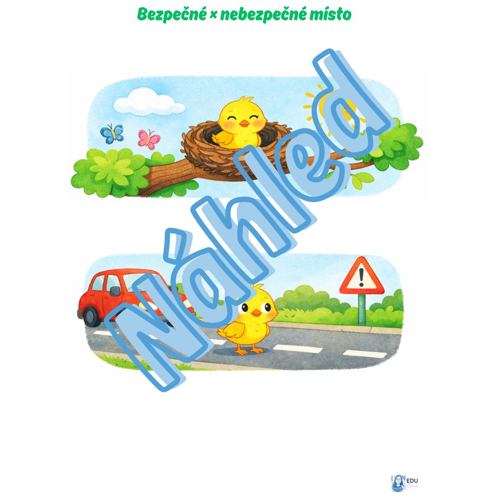 5–6 let: Grafomotorické dokreslování hnízda a logické porovnávání bezpečných a nebezpečných míst