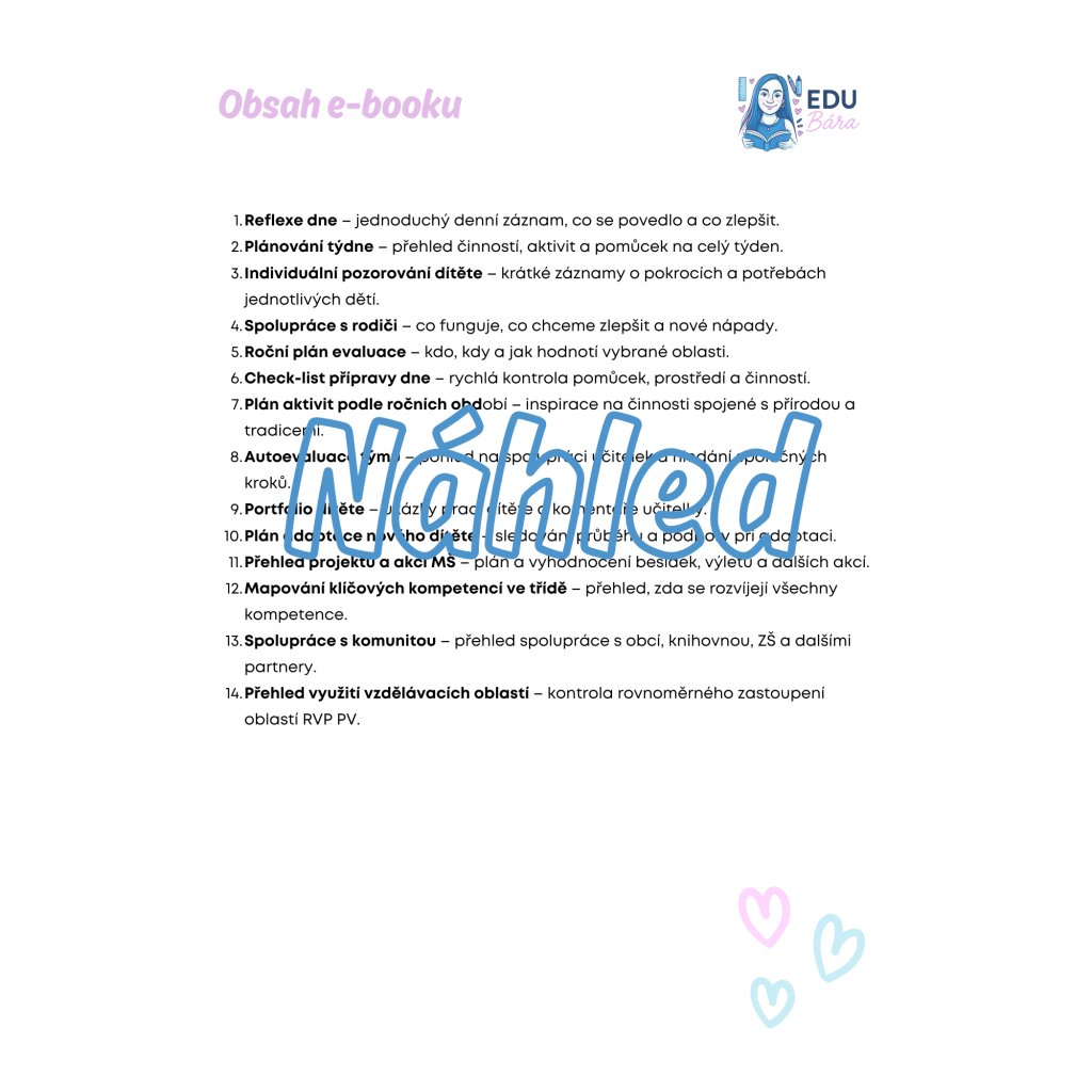 👉 Jeden e-book = 14 šablon a pracovních listů, které ti ušetří čas, přinesou jistotu a podpoří kvalitu vzdělávání ve školce.