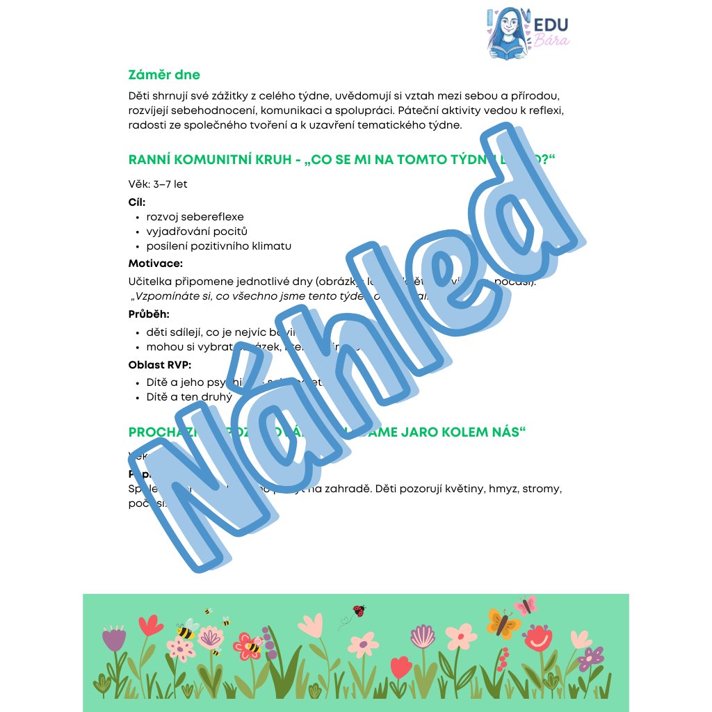 Kompletní celodenní vzdělávací program, který slouží jako emoční a prožitkové završení jarního tematického bloku, upevňuje vztahy ve třídě a rozvíjí schopnost sebereflexe dětí