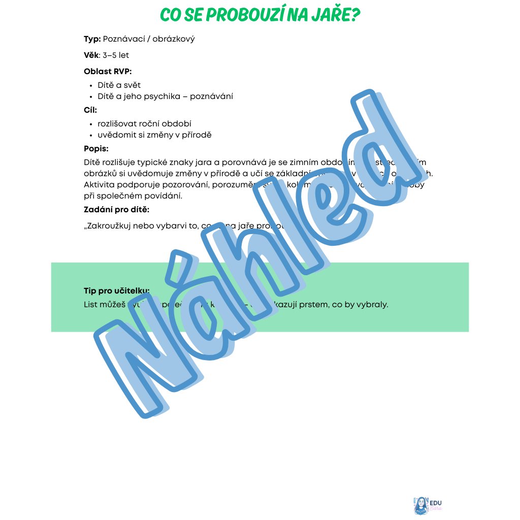 Kompletní celodenní vzdělávací program, který vás i děti provede prvními jarními dny plnými objevování a radosti z probouzejícího se života.