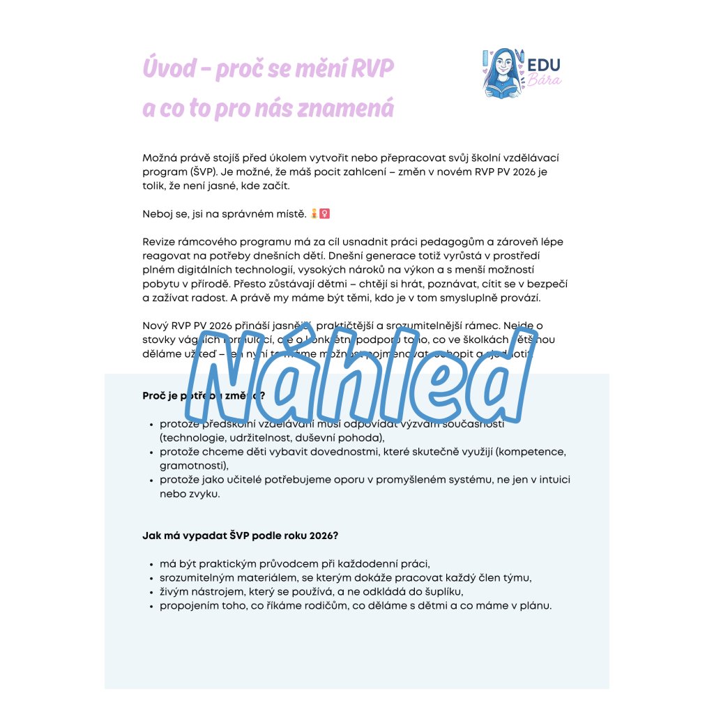 Praktický návod pro učitelky, které chtějí připravit školní vzdělávací program snadno, přehledně a v souladu s novou revizí.