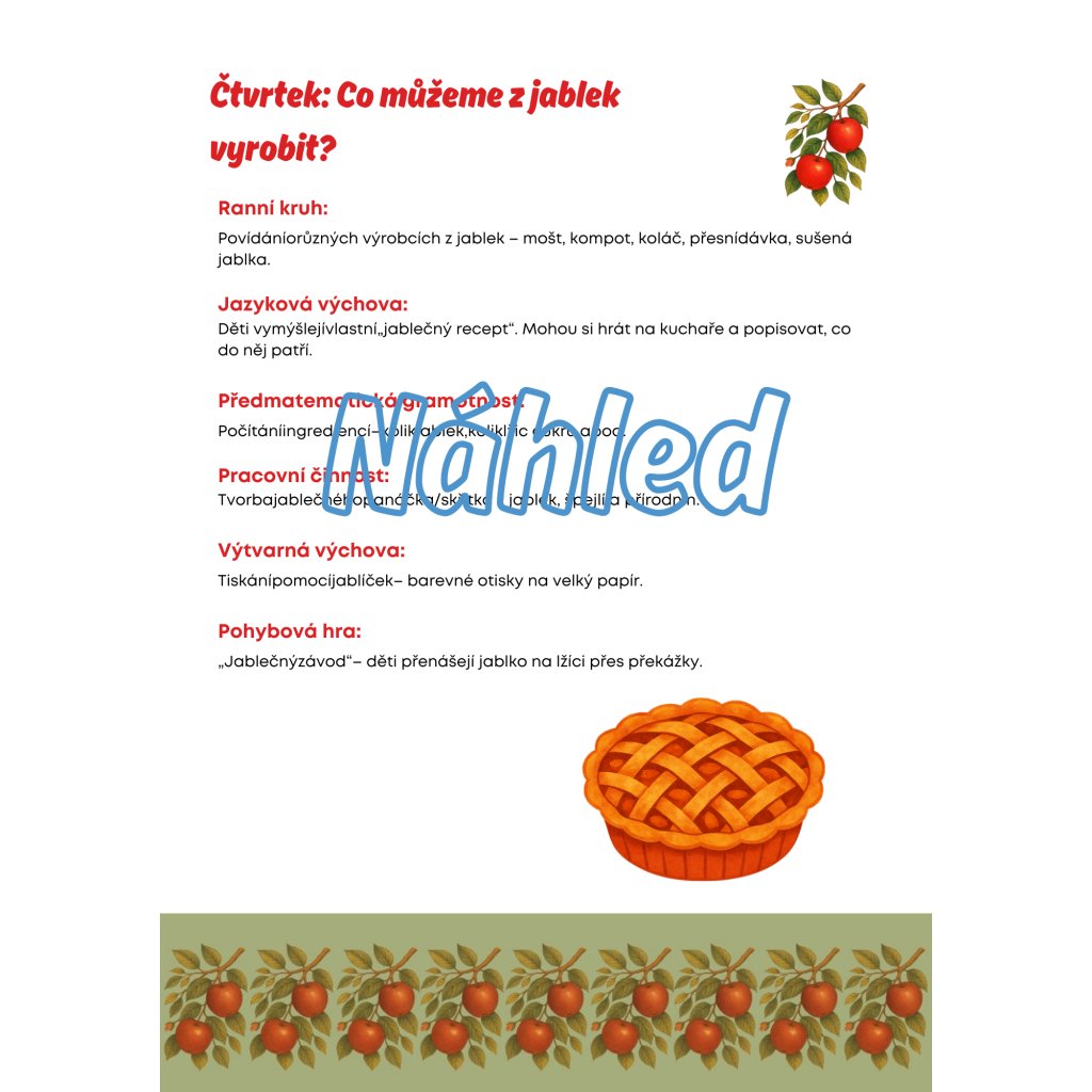 Hotový balíček aktivit, pohádek, her a pracovních listů k podzimnímu tématu jablek.