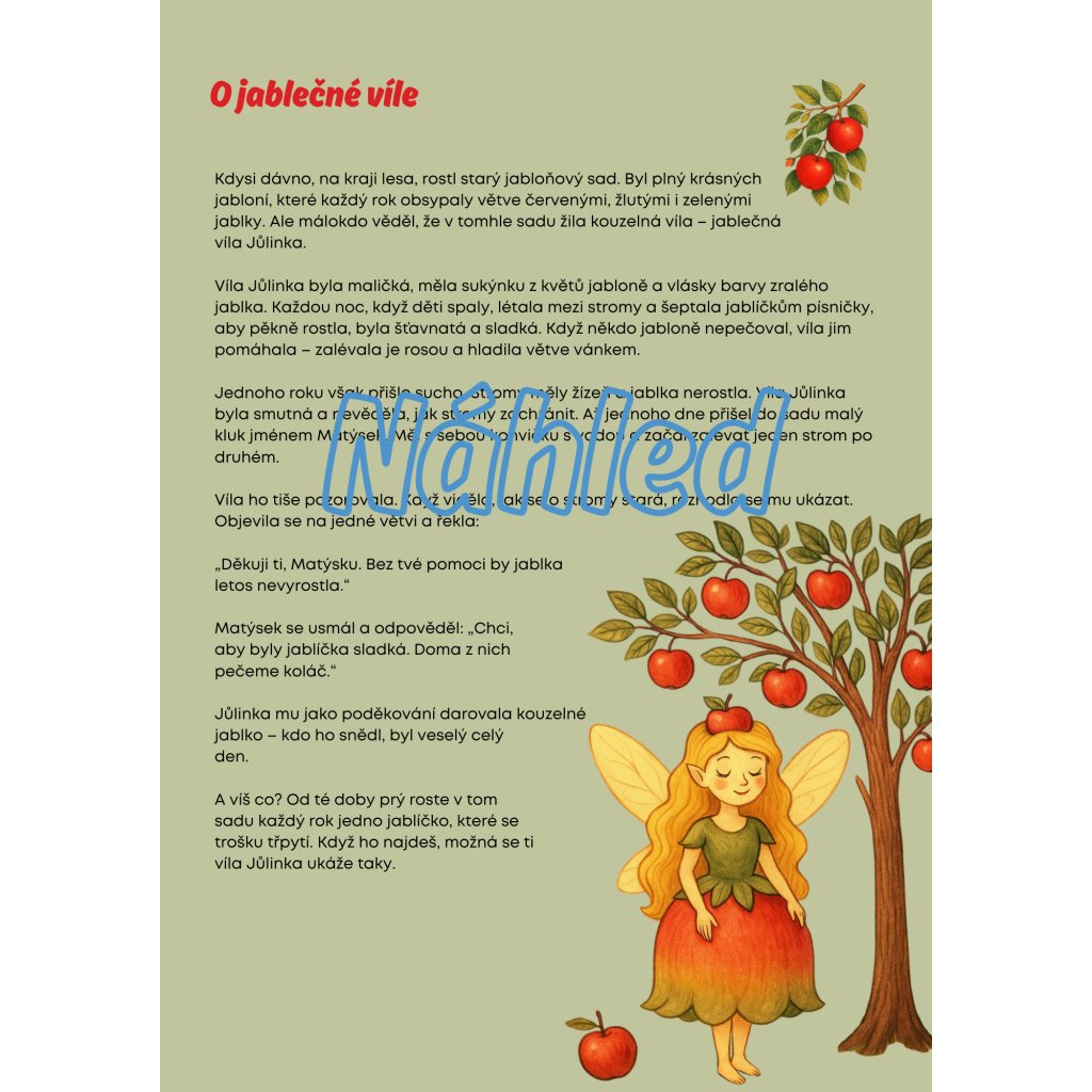 ✅ Pohádky (O jablečné víle Jůlince, Jak rostlo jablíčko) s otázkami k porozumění