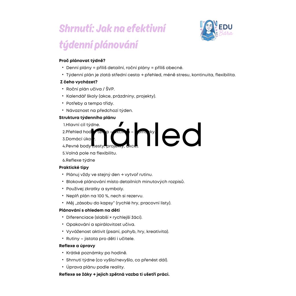 🎁 Ideální pro učitele, kteří chtějí mít jasno ve svém týdnu a zachovat si prostor pro kreativitu.