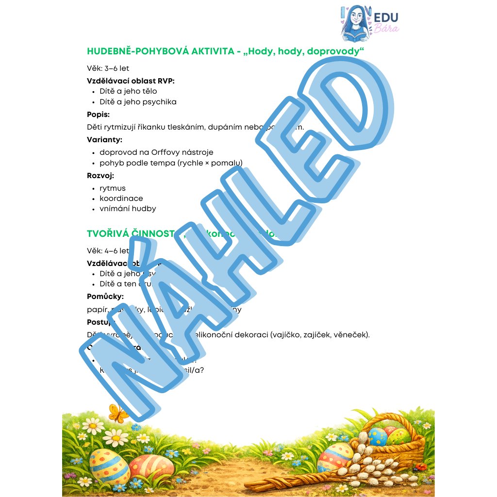 Kompletní celodenní vzdělávací program, který dětem citlivě otevírá svět tradic a zvyků spojených s oslavou jara